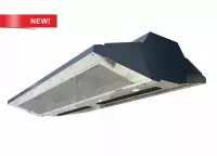 Тепловая завеса Призма-1 с двумя лицевыми панелями, под углом. По заказу панель можно изготовить из нержавеющей стали.Возможны различные варианты отделки лицевых панелей, нанесение логотипов, знаков, рисунков. Встроена плата PCB-AC, позволяющая подключать неограниченное количество завес к одному пульту, а также дополнительное оборудование. Монтаж на шпильках.